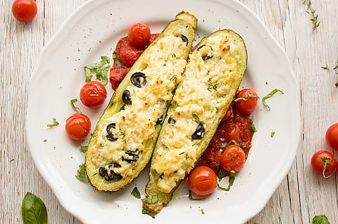 Zucchini-Boote mit Ei