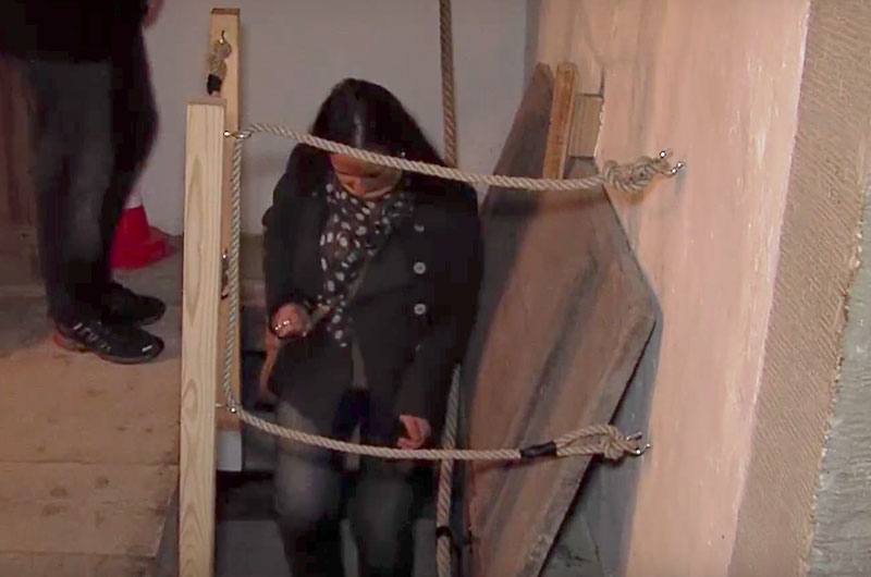 | Hinter dieser Geheimtiür - das private Örtchen:-) | Für Besucher sonst tabu: Abstieg zur Zisterne | Unter das Ekhof-Theater |